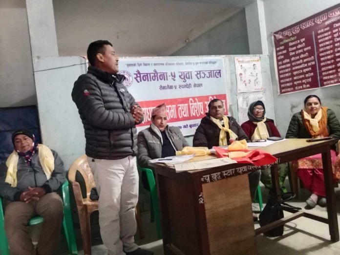 सैनामैना । सैनामैना नगरपालिका वडा नं ५ मा रहेको युवा सञ्जालको प्रथम साधारणसभा एवम् अधिवेशन सम्पन्न भएको छ । सञ्जालको अधिवेशनबाट राजेन्द्र घिमिरे पुन: निर्वाचित हुनु भएको छ ।