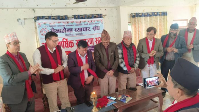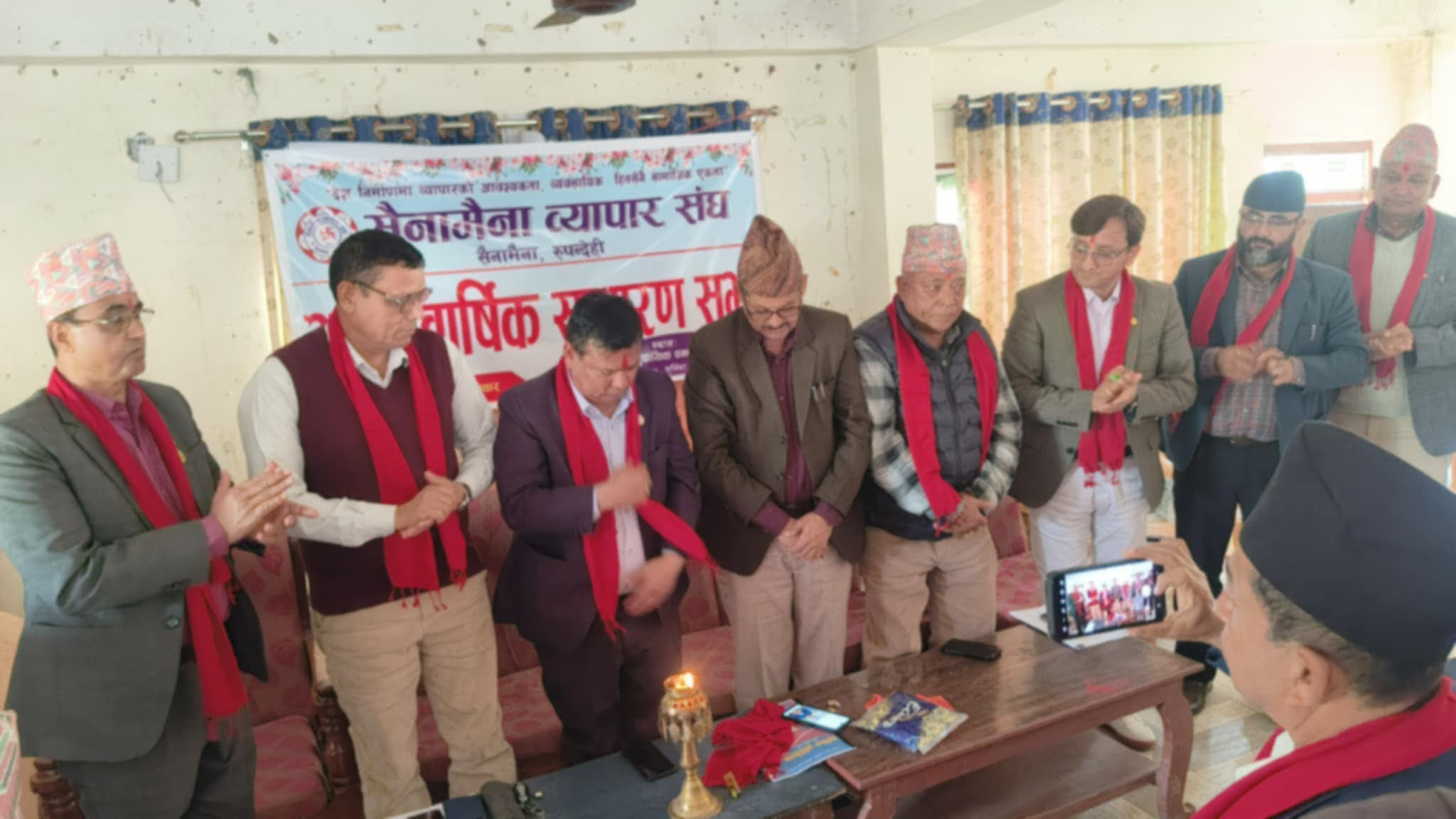 सैनामैना, माघ २३ । सैनामैना व्यापार संघ रुपन्देहीको आठौं साधारण सभा बुधबार सम्पन्न भएको छ । त्यसअघि साधारण सभाको एक समारोहका बीच बुधबार उदघाटन गर्दै सैनामैना नगरपालिकाका प्रमुख फणेन्द्रप्रसाद शर्माले संगठनको हकहितका साथसाथै मुलुक निर्माणमा समेत उद्योगी व्यवसायीले योगदान दिन आग्रह गर्नुभयो । उहाँले आठौं साधारण सभा सम्पन्न भैरहँदा अर्को बर्ष हुने नवौं साधारण सभाले नयाँ योजनाहरु र नयाँ नीतिहरु लिएर आउने छ भन्ने शुभकामना दिनुभयो । निजी क्षेत्रको सहकार्य र समन्वयमा समृद्ध नगरको संकल्प साकार पार्न लागिने उहाँको भनाइ थियो ।