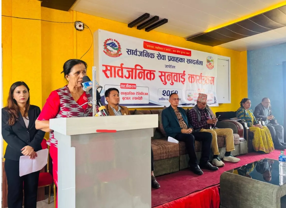बुटवल उपमहानगरपालिकासहित मातहतका कार्यालयबाट भए गरेका सेवा प्रवाहबारेको सार्वजनिक सुनुवाइ कार्यक्रम शुक्रबार बुटवलको नयाँगाउँमासम्पन्न भएको छ । बुटवल उपमहानगरपालिकाको आयोजना र बुद्व सामुदायिक टेलिभिजन बुटवलको सहजिकरणमा भएको सार्वजनिक सुनुवाइ कार्यक्रममा सहभागी सेवाग्राहीहरूले केही युवाहरूले रातिको समयमा चर्को आवाजमामोटरसाईकल कुदाउदा निदाउन नपाएकोदेखि सडकबत्तिको महशुलको भार उपभोक्तालाईपारेको गुनासोसम्म गरेका थिए ।