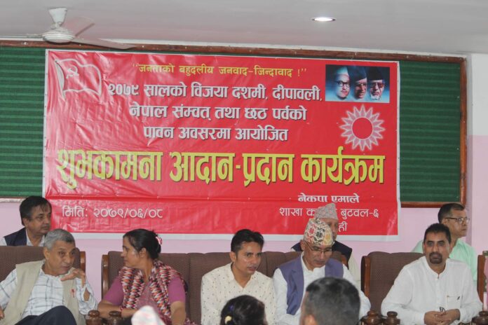 नेकपा एमाले बुटवल उपमहानगरपालिका वडा नम्बर ६ कमिटिको आयोजानमा बुटवलमा भएको विजया दशमी, दिपावली तथा छठ पर्वको शुभकामना आदानप्रदान कार्यक्रममा लाई संवोधन गर्दै उपाध्यक्ष पौडेलले अहिलेको गठबन्धन सरकारले आर्थिक वृद्धिदर ।सकारात्मक बनाउनको लागि ठोस पहललगर्न नसकेको बताए । उनले अहिलेको गठबन्धन सरकारले जनताको पक्षमा कुनै पनि सकारात्मक काम गर्न नसककको बताए । उनले आगामि निर्वाचन समाजवाद, समृद्धि तर्फ लैजाने कि अधोगति तर्फ लैजाने भन्ने कुराको फैसला गर्ने दिन भएको बताए । उनले भने–“ आगामी निर्वाचन मा जनताकोपक्षमा काम गर्ने प्रतिधद्द पार्टि नै नेकपा एमाले हो ।’